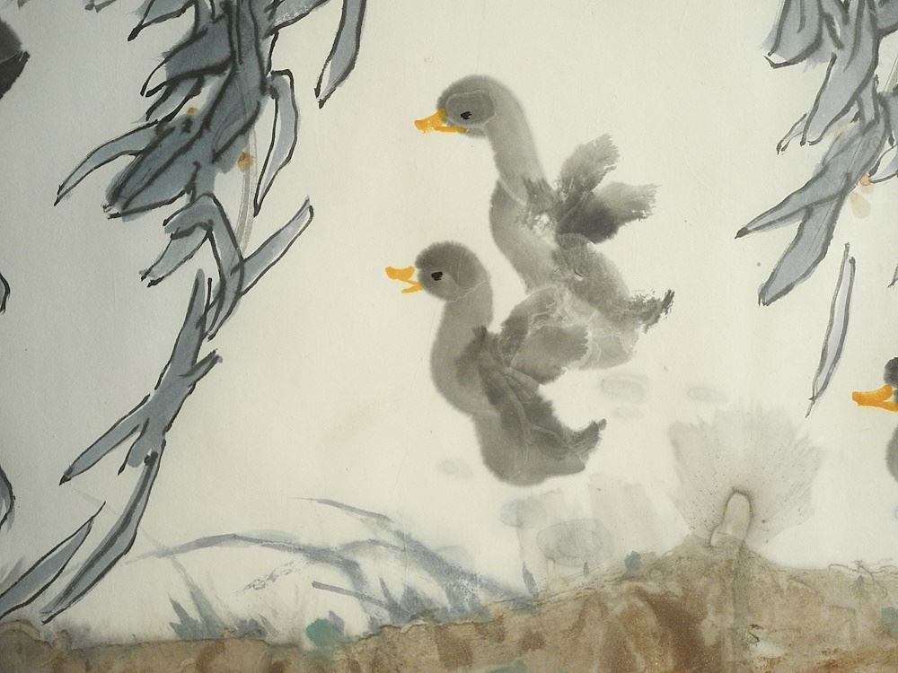 Watercolour by Shen Xueren, 26 1/2" x 53 1/2", "Ducklings".