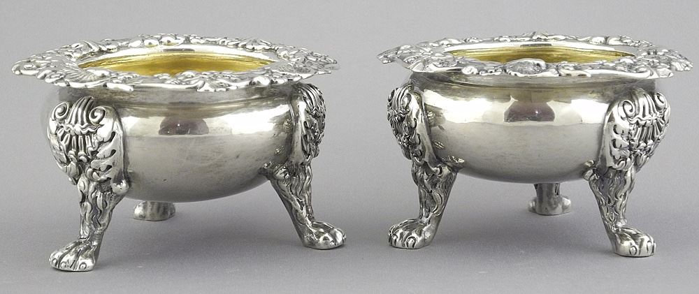 Pair of Georgian Silver Parcel Gilt Salt Cellars, 2 1/8" x 3 5/8" Diam., 430g.