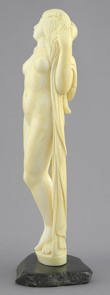 Walrus Tusk Figure on Jade Base, signed C.Min, TH 8 1/2".