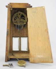 LOT 159 L & G.J. Stickley Oak Table Clock, 9 5/8"h. Estimate: $150 - $300 Auction Date: Tuesday, October 22 2024 at 4:00 PM