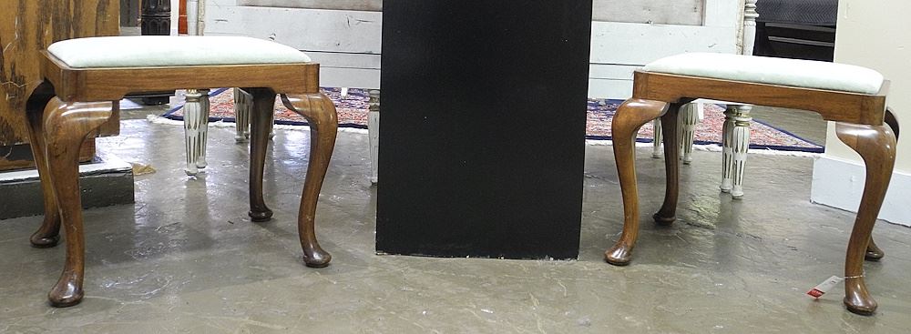 LOT 124 Pair of Queen Anne Style Walnut Stools, 18" High. Estimate: $200 - $300 Sold For: $150 Auction Date: Tuesday, October 22 2024 at 4:00 PM