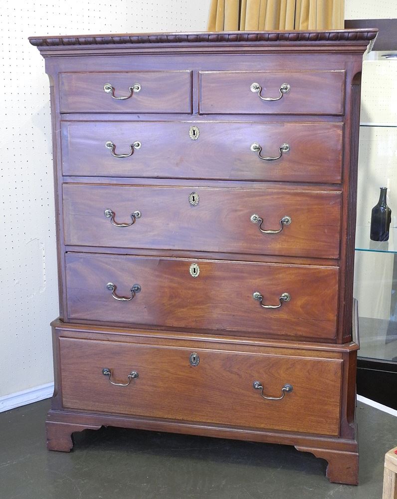 19th C. Mahogany Chest on Base, 54 3/4"h.