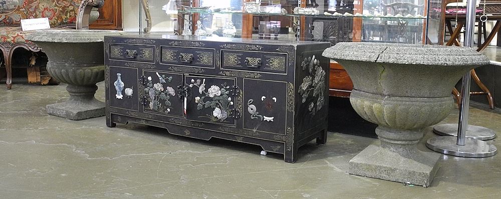 LOT 119 Pair of Concrete Exterior Garden Urns, Approx. 25" Diameter (as found). Estimate: $150 - $300 Sold For: $160 Auction Date: Tuesday, October 22 2024 at 4:00 PM