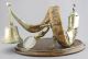 19th C. Oak & Ram's Horn Inkwell (9 1/4" x 16 1/2" x 9 1/2")
