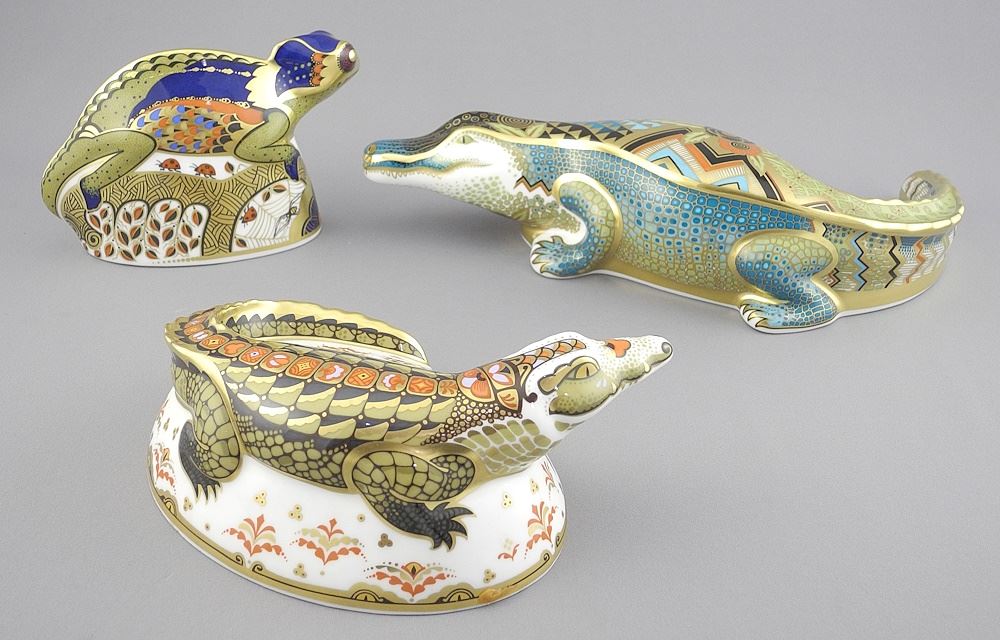 LOT 60 Royal Crown Derby "Alligator" (10"L) , "Crocodile" & "Chameleon" Paperweights. Estimate: $150 - $250 Sold For: $170 Auction Date: Tuesday, October 22 2024 at 4:00 PM