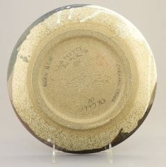 Cornwall Stone Dish signed (Walter) Dexter, 10 1/8" Diam, Ngan Blue /LA Matte Black.
