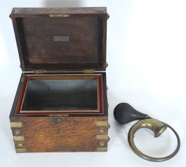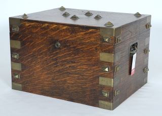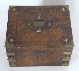 LOT 63 Benson & Hedges London Brass Crenellated Oak Humidor, 10 1/2" x 16" x 12 1/2". Estimate: $200 - $300 Sold For: $425 Auction Date: Tuesday, October 22 2024 at 4:00 PM
