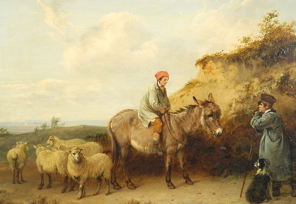 Oil on Board signed E (Edmund) Barstow, 11 3/4" x 14 3/8", "Youthful Gossips" C.1846.