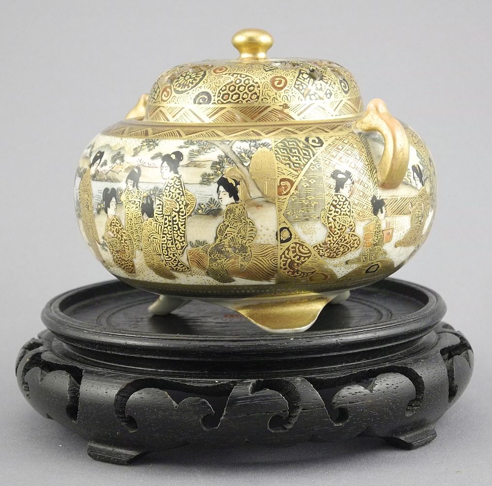 Satsuma Covered Censer (3 1/4"h) with Wood Stand.