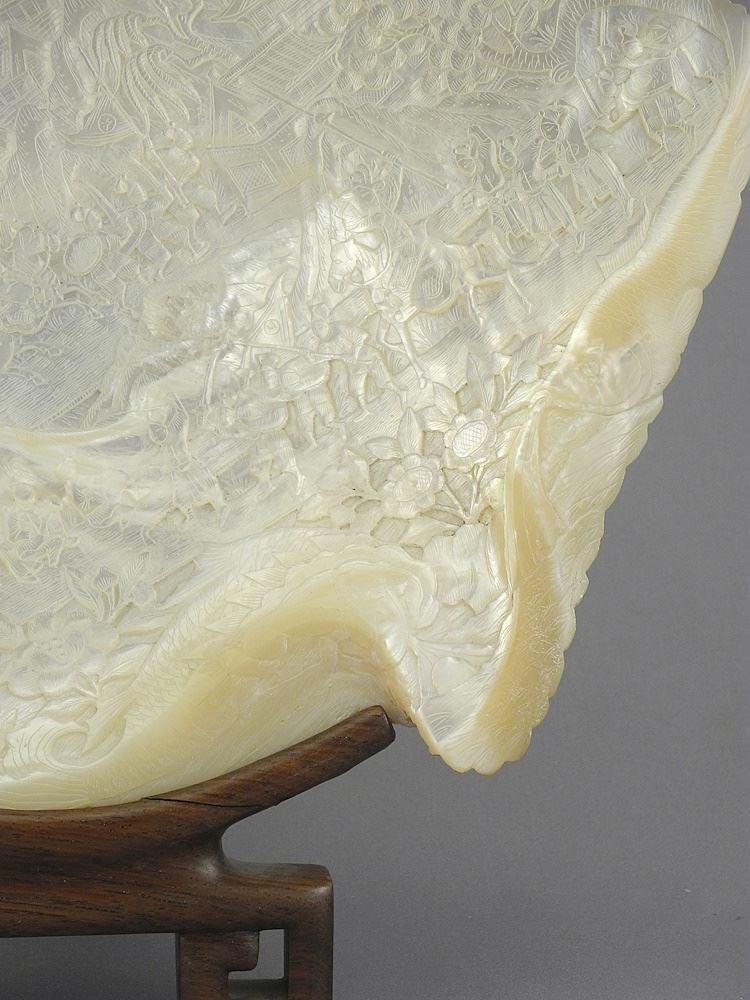 19th C. Cantonese Carved Shell (9"w) with Stand, 296g.