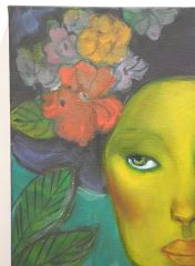 Oil on Canvas signed (Lydia) Velasco 2019, 24" x 18", "Hermosa en el Jardin 1" with C.O.A.