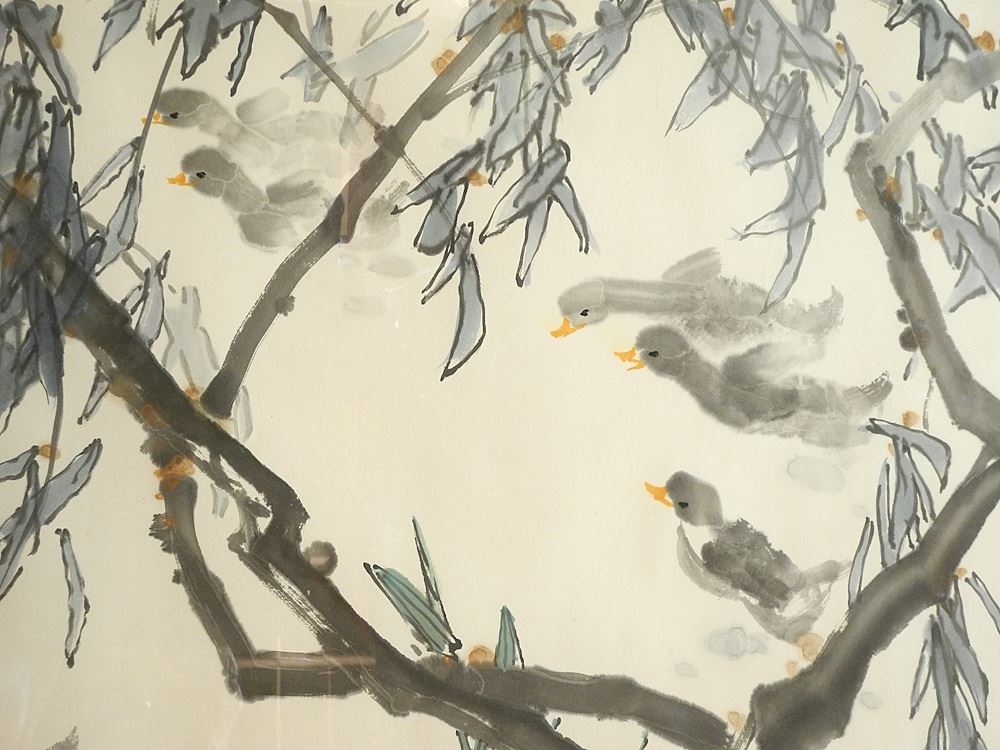 Watercolour by Shen Xueren, 26 1/2" x 53 1/2", "Ducklings".
