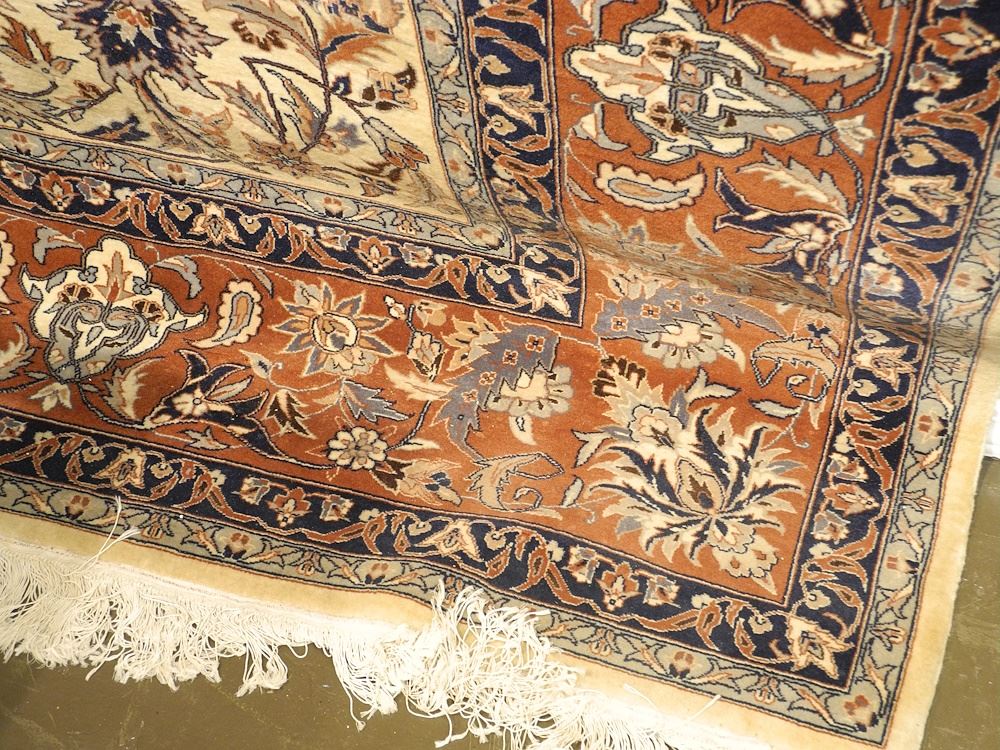 LOT 185 Hand Knotted Wool Carpet Approximately 8'2" x 10'9". Estimate: $500 - $1,000 Sold For: $1,200 Auction Date: Tuesday, December 10 2024 at 4:00 PM