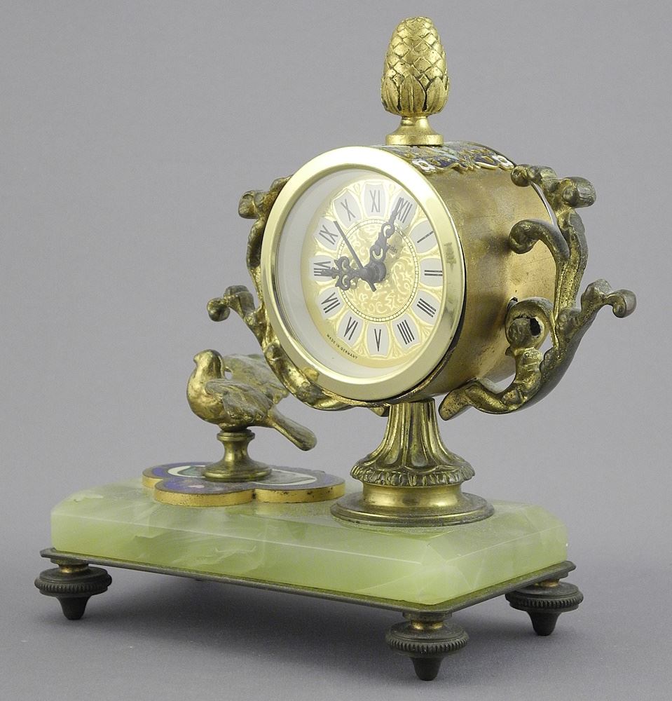 French Champleve Enamel & Onyx Clock Garniture, 5 5/8"h, Clock Replaced.