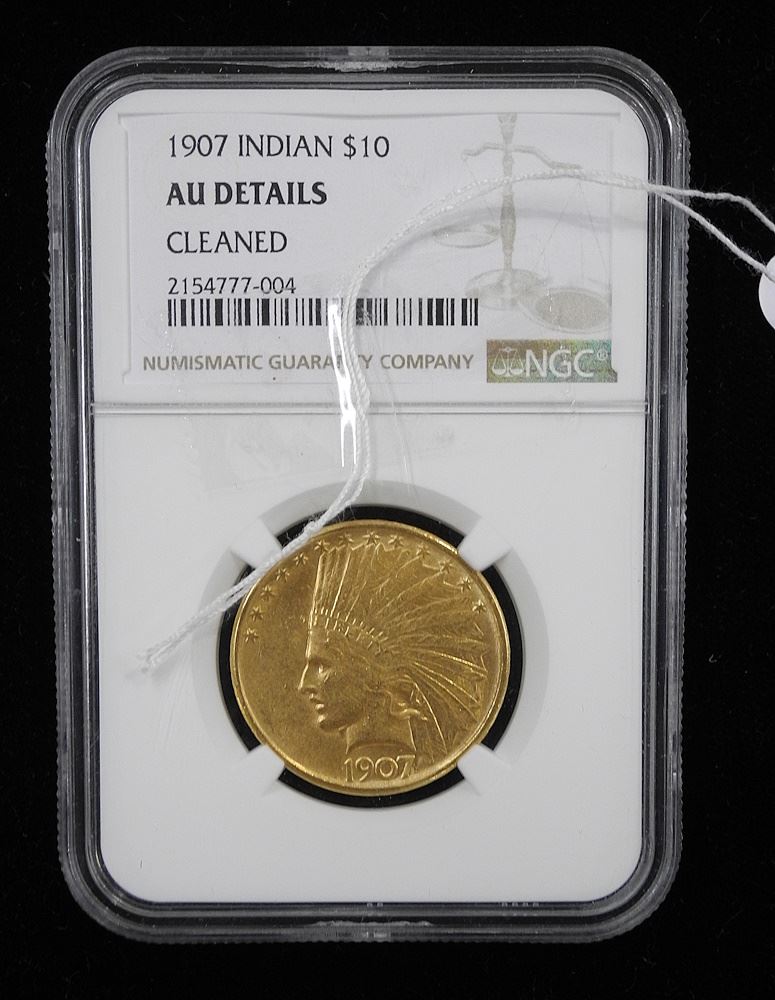 1907 USA $10 Gold Indian Graded/ Cleaned.