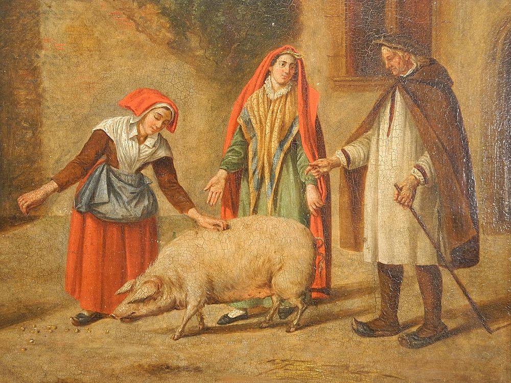 Late 18th C. / Early 19th C. Unsigned Oil on Board, 10 1/4" x 14 3/8".