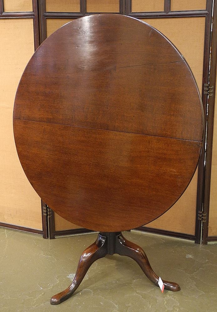 George I/II Mahoghany Birdcage Top Tripod Tip Up Table, 37 3/4"D.