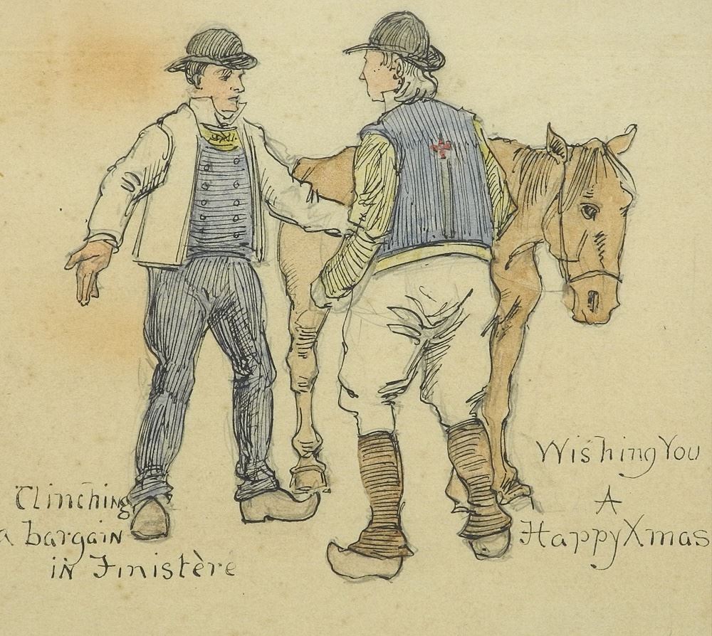 LOT 35 Ink & Colour Christmas Card Attributed to Robert Polhill Bevan, 4 1/8" x 4 1/2". Estimate: $300 - $500 Auction Date: Tuesday, December 10 2024 at 4:00 PM