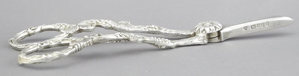 Pair of Victorian Hallmarked Silver Grape Shears, London 1818, 6 1/2"L, 93g.