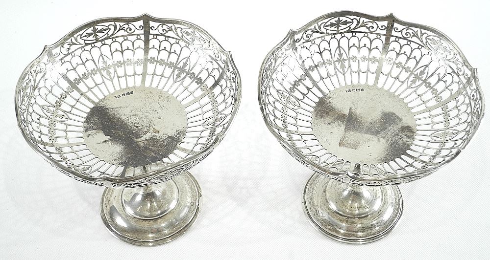 Pair of Hallmarked Silver Reticulated Compotes, 5 3/4" x 6 7/8 " Diameter, 442g.
