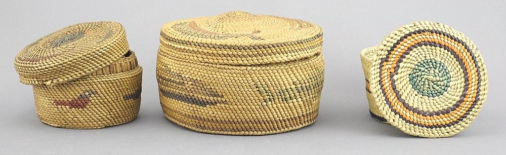 Three Nuu-Chah-Nulth Baskets, 2 5/8" - 3 7/8" Diameter.