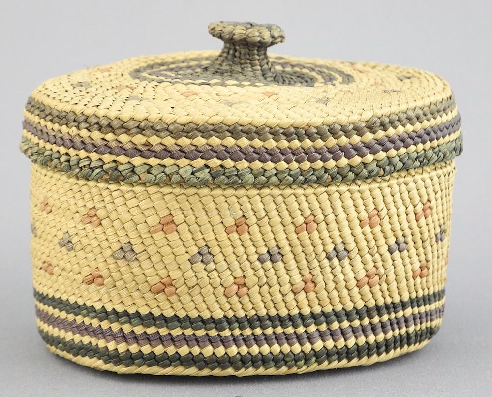 LOT 87 Nuu-Chah-Nulth Knob Top Basket, 3 3/8"w. Estimate: $150 - $200 Sold For: $150 Auction Date: Tuesday, December 10 2024 at 4:00 PM