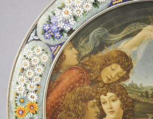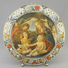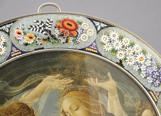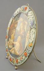 Italian Micro-Mosaic Frame with Madonna Print, 10 7/8" Diameter.