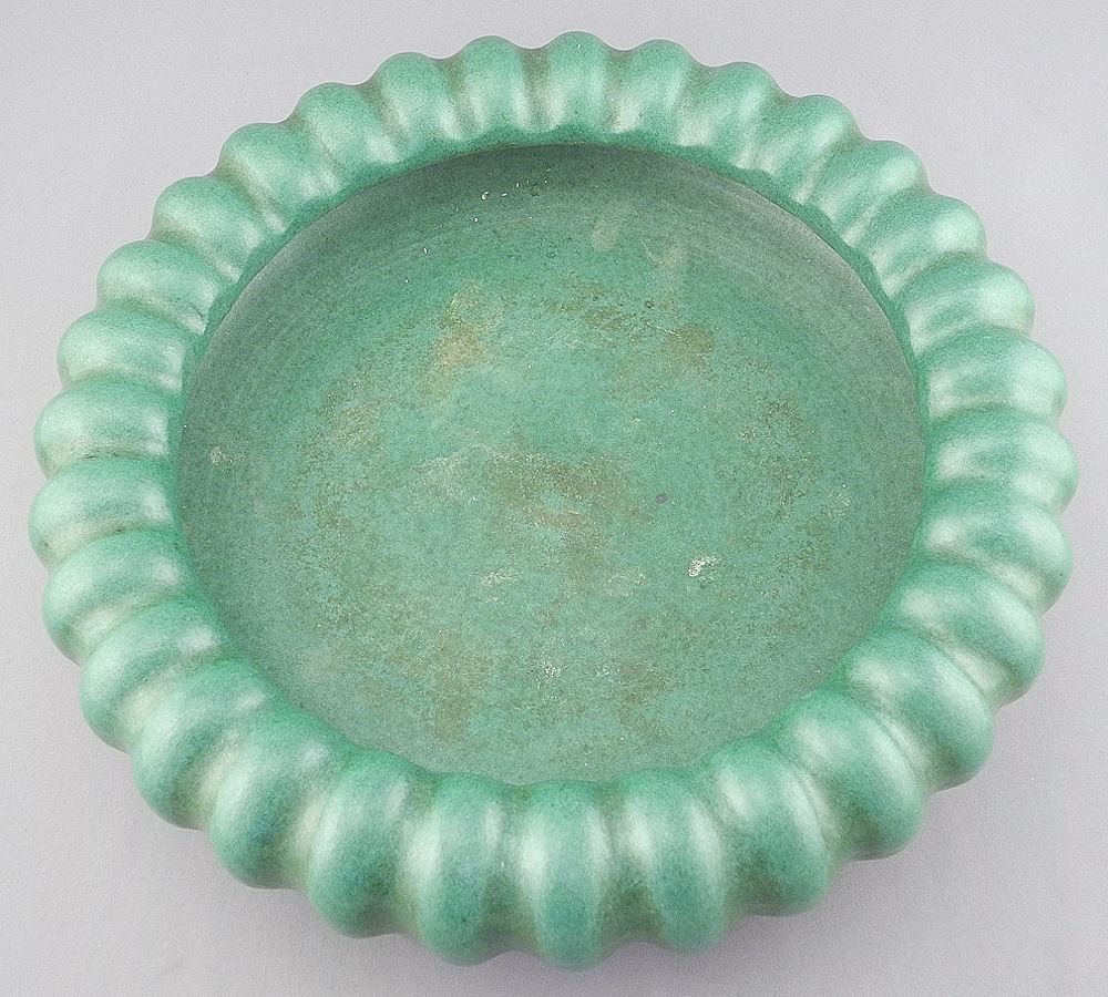 Michael Andersen Denmark Green Glazed Low Bowl Impressed 4261, 12 1/2" Diameter.