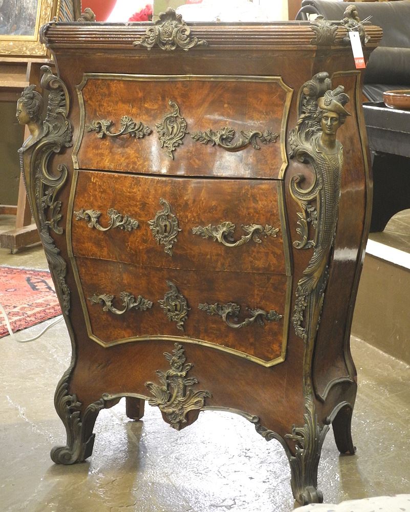 Louis XV-Style Marble Top Bombe Commode, 38 1/2" x 29" x 15 1/2".