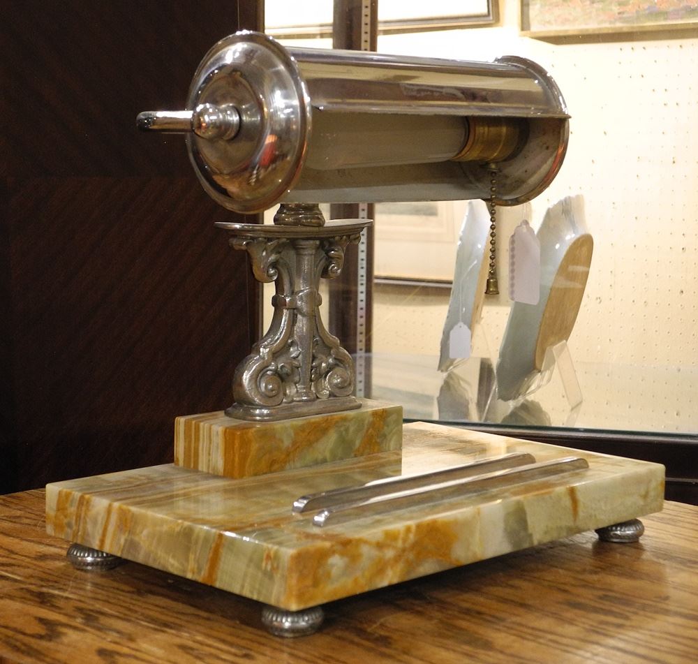 Art Deco Onyx & Chrome Desk Lamp, 10" x 11" x 7".