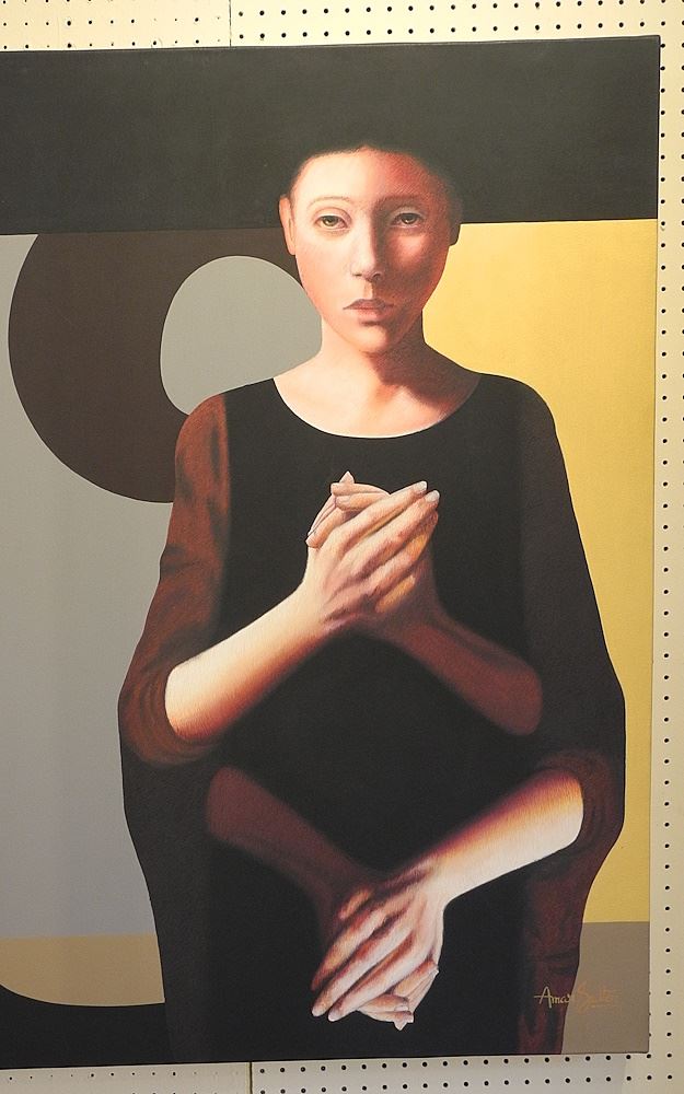 Oil on Canvas signed Amar Sulton, Verso, 46" x 45 1/2", "Clubs & Clasped Hands".