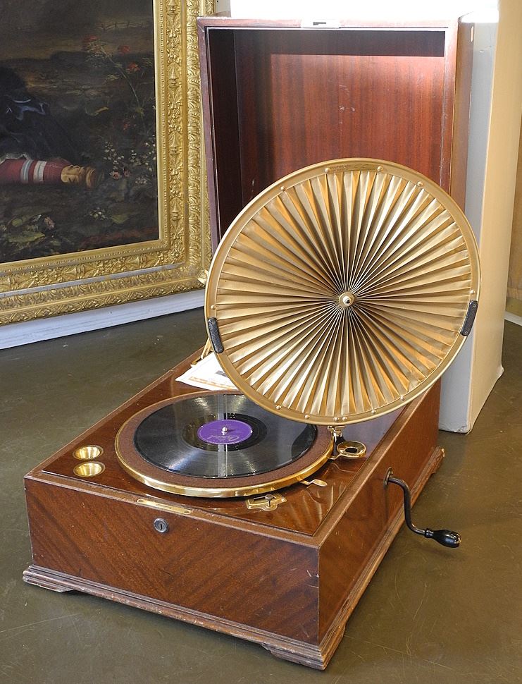 1924 British HMV Model 460 Lumiere Diaphragm Gramophone, 21 3/4" x 16 1/2" x 11".