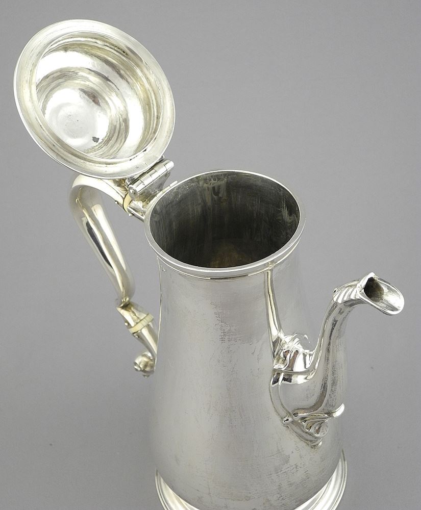 LOT 103 George II Silver Coffee Pot, London 1752, 9 7/8"h, 865g. Estimate: $1,200 - $1,500 Sold For: $1,200 Auction Date: Tuesday, December 10 2024 at 4:00 PM