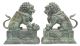 Pair of Verdigris Bronze Buddhist Lion Dogs