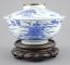 Chinese Blue & White Porcelain "Lotus" Bowl & Cover with Shou Mark (3 x 7" diam.) with Stand.