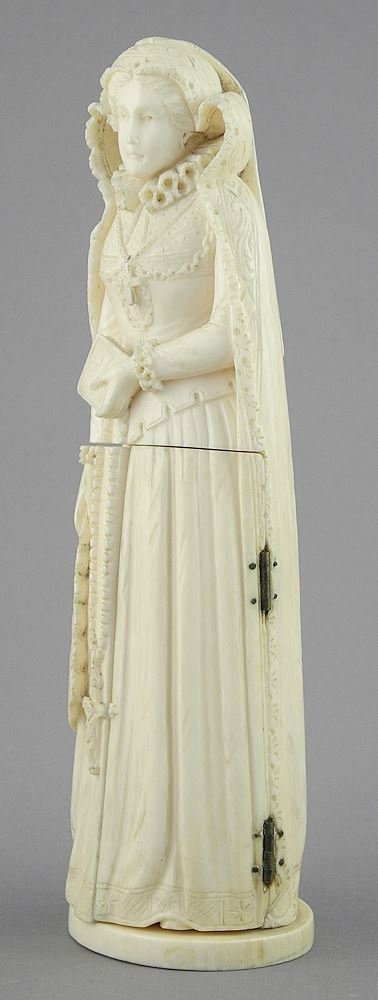 A Dieppe Carved Triptych Figure of Mary Queen of Scotts, 7 5/8" (No Export).