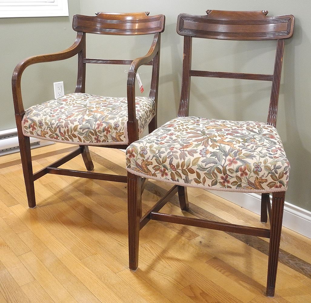 Georgian Carved Mahogany Fold-Over Dining Table with Two Leaves, 89 x 44 1/2" & 10 Dining Chairs
