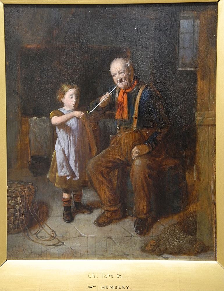 Pair of Oil on Panels signed Verso WM. Hemsley, Larger 8 5/8 x 7 1/8", "Oh! Take It" & "The White