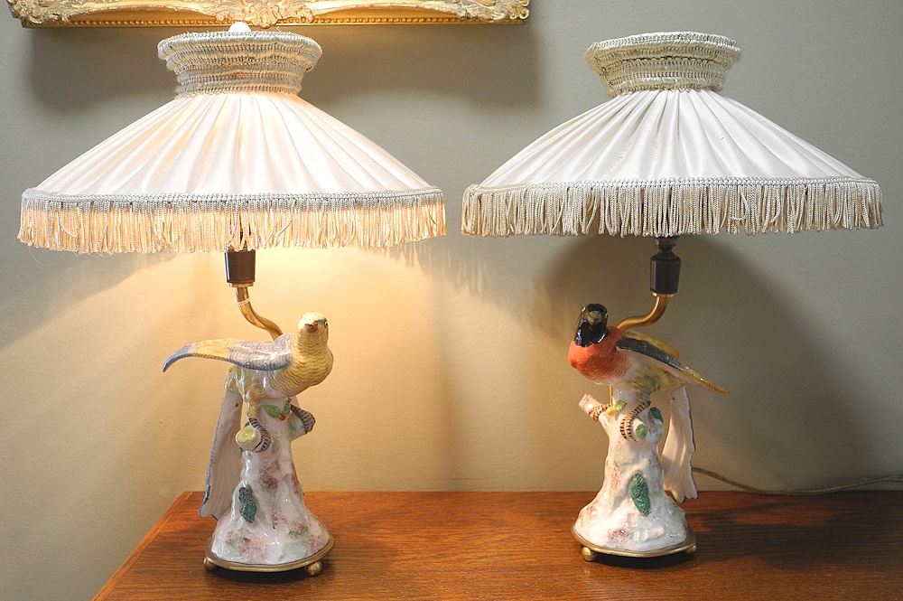 Pair of Porcelain de Paris Bird Form Dresser Lamps, 12".