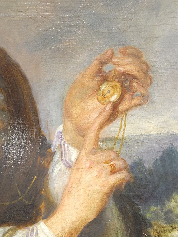 LOT 127 Oil on Panel signed E. Havell, 18 3/4 x 13 7/8", "Portrait of a Lady On Time". Estimate: $500 - $1,000 Auction Date: Tuesday, April 01 2025 at 4:00 PM