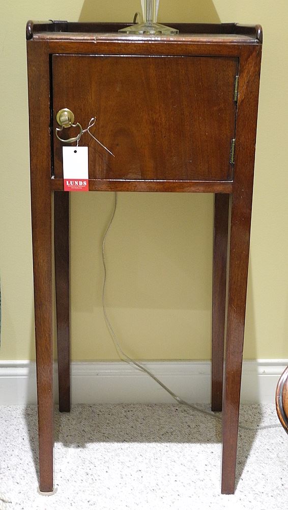 LOT 52 Two Georgian Mahogany Side Tables, 14 1/2 x 12 - 32 & 30 1/2"h. Estimate: $200 - $300 Sold For: $200 Auction Date: Tuesday, April 01 2025 at 4:00 PM