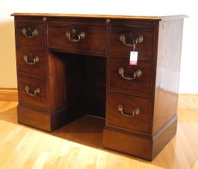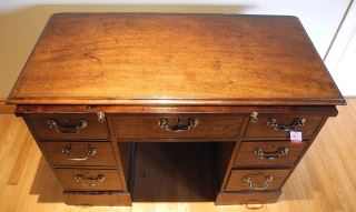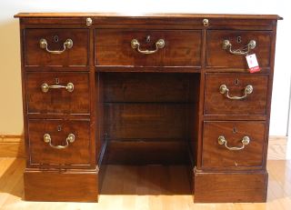 Georgian Mahogany Kneehole Desk With 7 Drawers and Pull Out Slide, 42"w x 19 3/4D x 31 3/4h