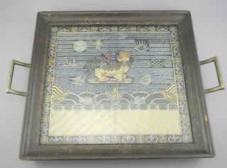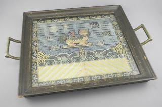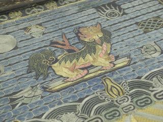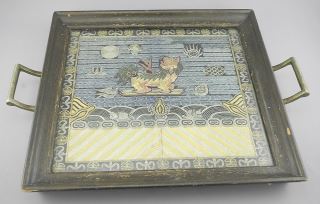 Qing Silk Rank Badge Mounted in Frame, 10 3/4 x 11 3/4".