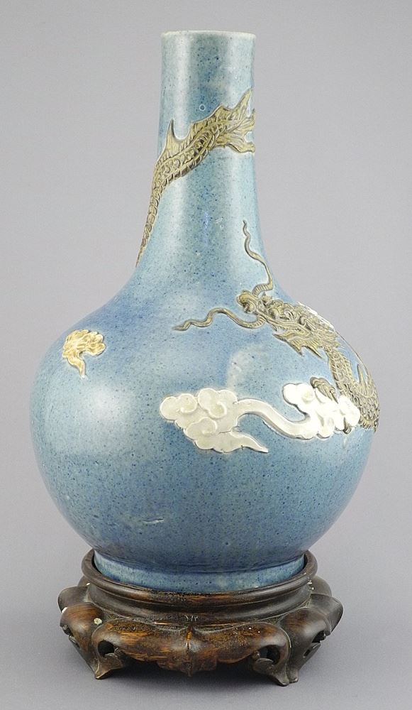 Chinese Molded Porcelain "Dragon" Vase (11"h) with Stand.