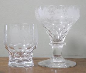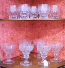 Set of Victorian Leaf & Berry Glasswares; Six Rummers & Eight Scotch, 5 1/2"h.