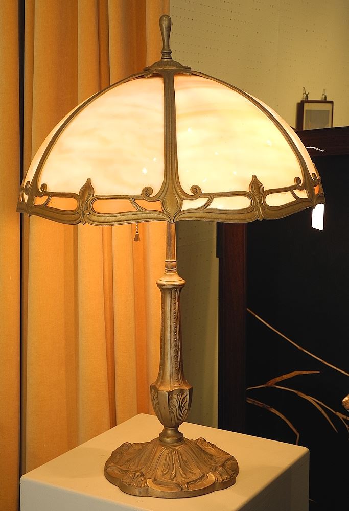 LOT 133 LB & Co. 2314 Cast Metal & Caramel Glass Shade Lamp. Estimate: $300 - $500 Sold For: $350 Auction Date: Tuesday, April 01 2025 at 4:00 PM