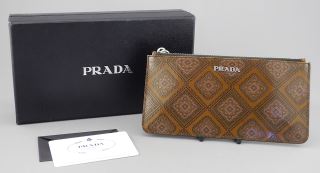 LOT 68 Prada Cognac & Malva Clutch with Original Box & Certificate of Authenticity. Estimate: $100 - $200 Sold For: $190 Auction Date: Tuesday, June 17 2025 at 4:00 PM