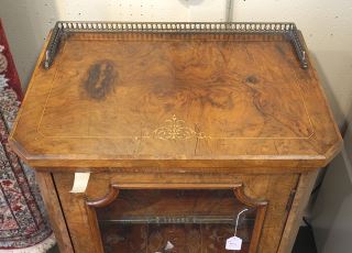 LOT 112 Victorian Burl Walnut Music Cabinet with Brass Gallery, 37 7/8"h. Estimate: $150 - $300 Sold For: $180 Auction Date: Tuesday, June 17 2025 at 4:00 PM