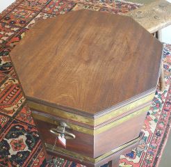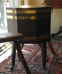 LOT 164 Georgian Brass Banded Mahogany Cellarette with Brass Drain Spigot, 27 7/8 x 20 1/4 x 20 1/4". Estimate: $300 - $500 Sold For: $500 Auction Date: Tuesday, June 17 2025 at 4:00 PM
