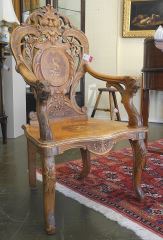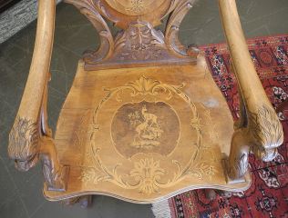 LOT 4 19th C. Black Forest Armchair, Inlaid Walnut, 45 3/4"h. Estimate: $200 - $400 Auction Date: Tuesday, June 17 2025 at 4:00 PM